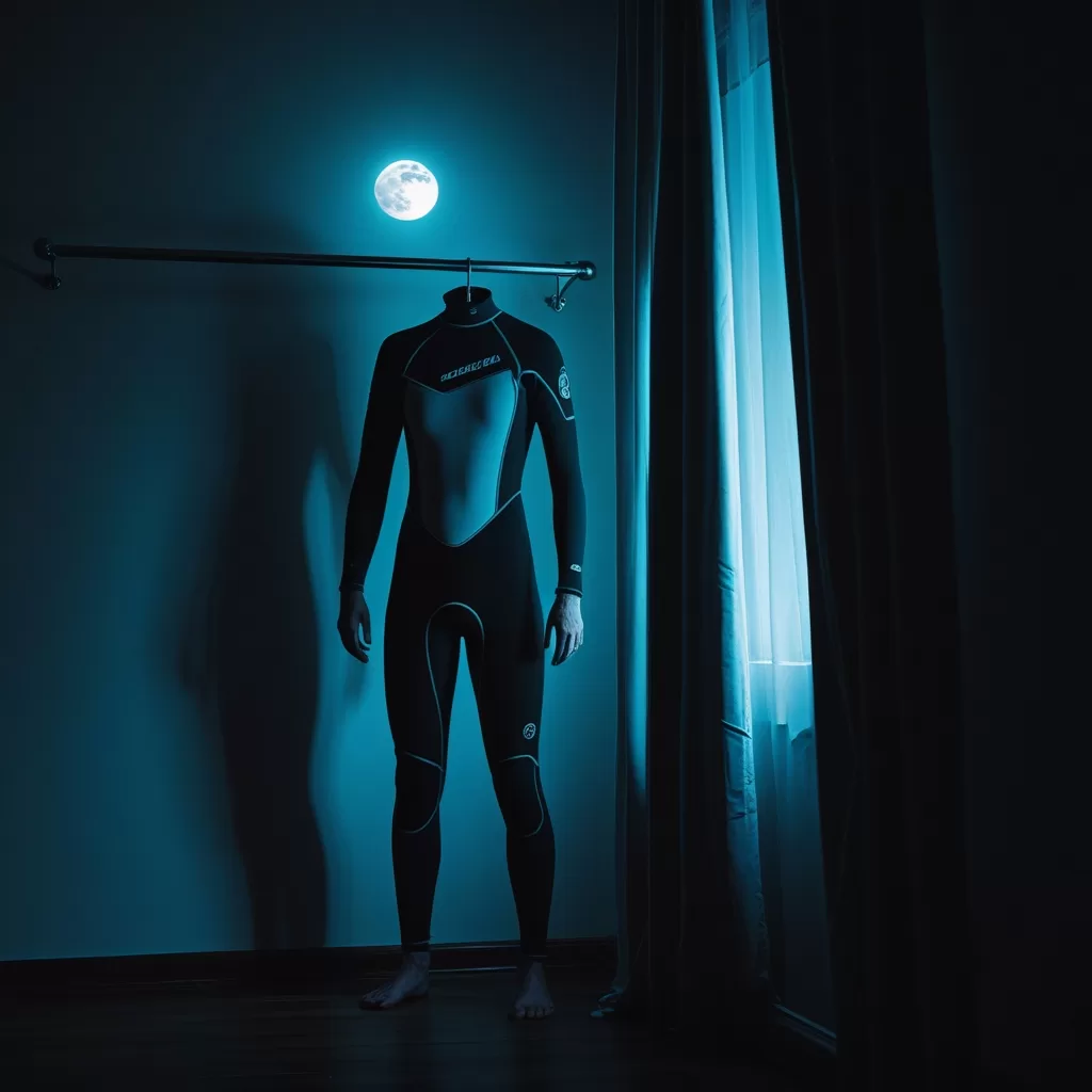 In fact, I’ve had some pretty funny and spooky moments with my imagination over the years. Like the time Michael and I were driving along, and I spotted what looked like an old haggard witch standing by the side of the road. As we got closer, it turned out to be a bin bag blowing in the wind. Or the time I swore I saw a rabbit, like something straight out of Alice in Wonderland, only to realise it was just a tree stump! There was also that moment when Michael’s surfing wetsuit was hanging on the curtain rail, and it scared the living daylights out of me because I thought it was a person (the image below is a hilarious and veyr imaginative AI creation!!). It’s these little (and sometimes creepy) moments that remind me of the magic we carry inside us, even if it’s just in the form of an overactive imagination.