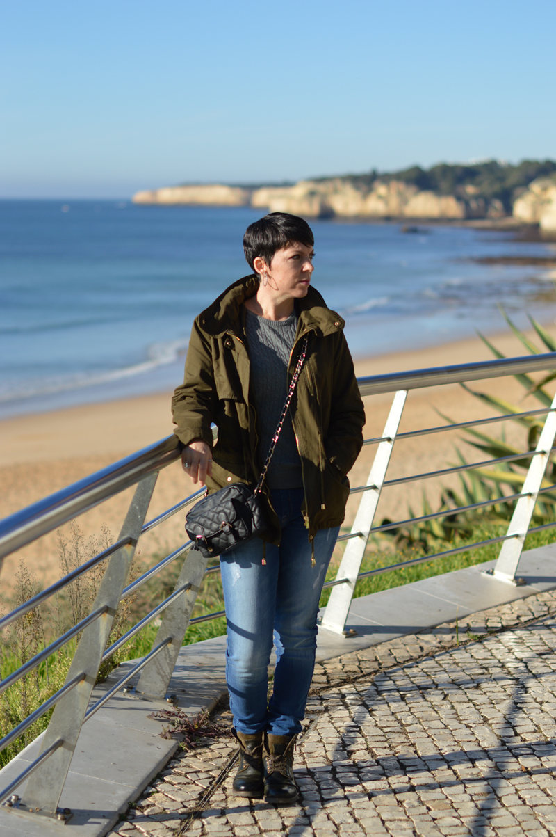 Jeans: Tiffosi, Jacket: Mango, Jumper: H&M, Boots: Seaside, Handbag: H&M.