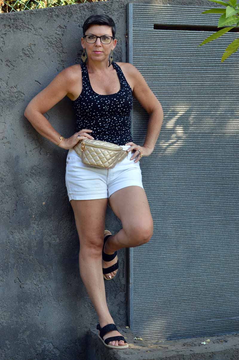 Instead, I wore a simple pair of white denim shorts and a vest top. I had intended to wear a tee-shirt and sneakers but it was just too hot for me. Sandals were the only option. And I was still TOO hot! I also wanted to be completely hands-free, so a bumbag was the way to go. However, I only had one bumbag which is brown leather and really quite drab, to be honest. So, we popped into Aqua shopping centre yesterday morning to see if I could find a more suitable one.