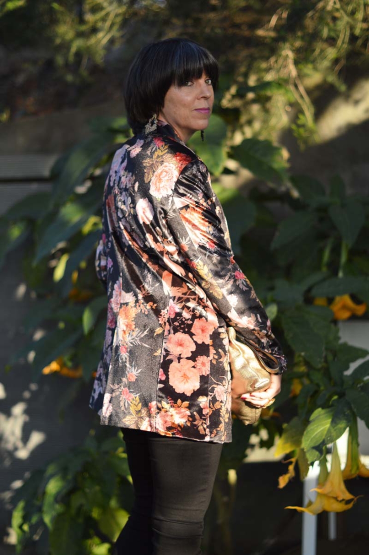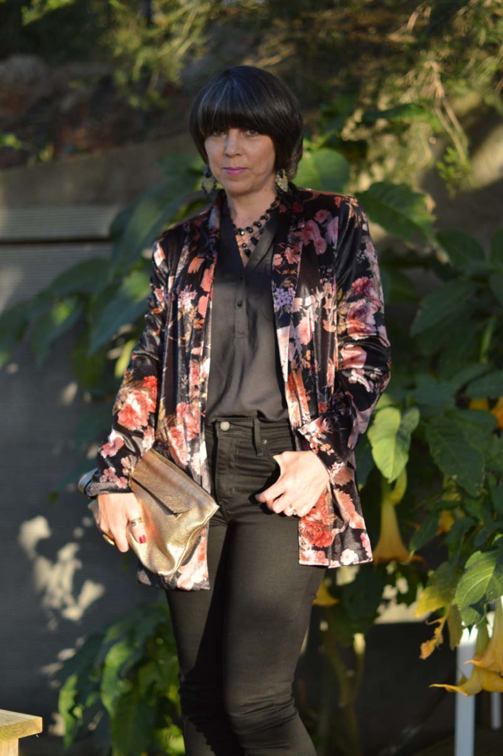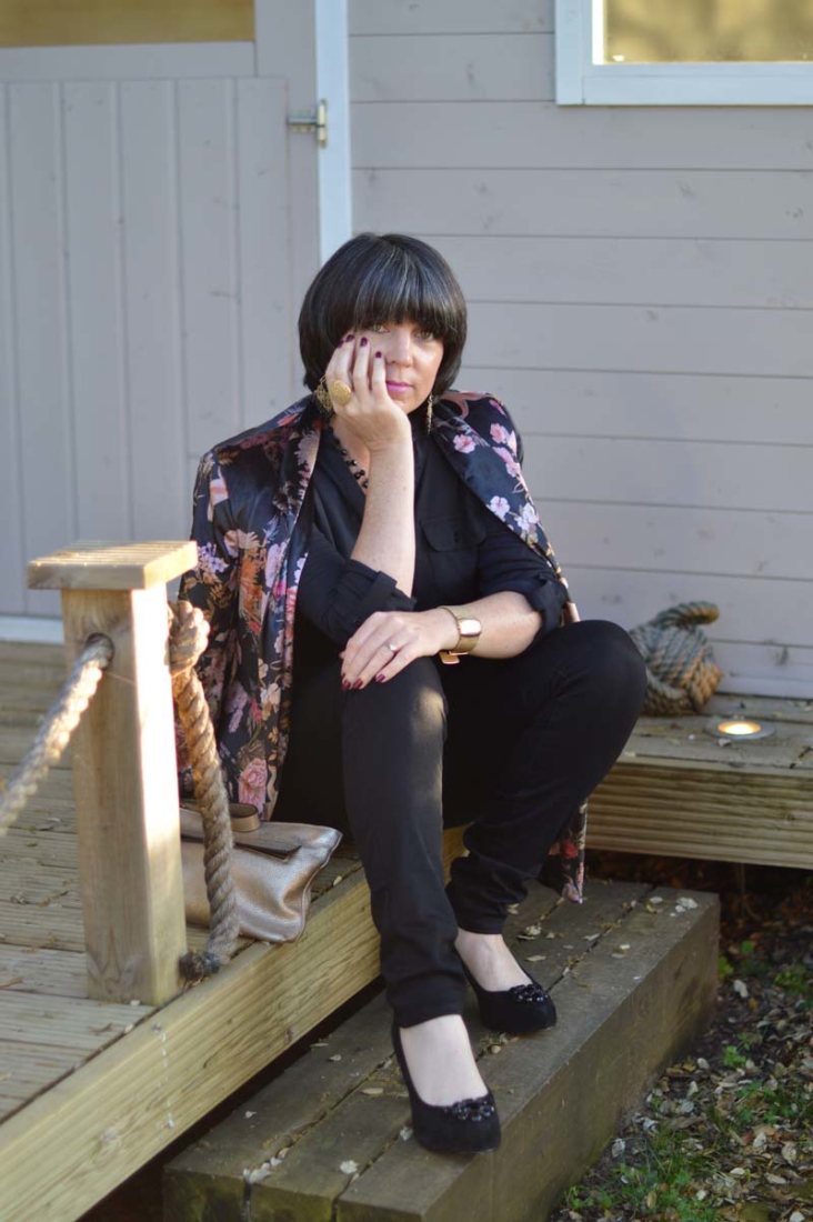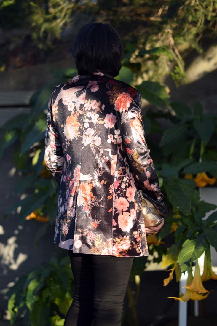 So this was the perfect outfit for me: black skinny Levi jeans, a simple black blouse from Primark and these gorgeous black heels that I just adore. I bought them from Clarks a couple of years ago. All paired with the velvet jacket which has the most divine pink floral pattern on it, as well as my gold clutch from Massimo Dutti – another favourite which does get a lot of use.