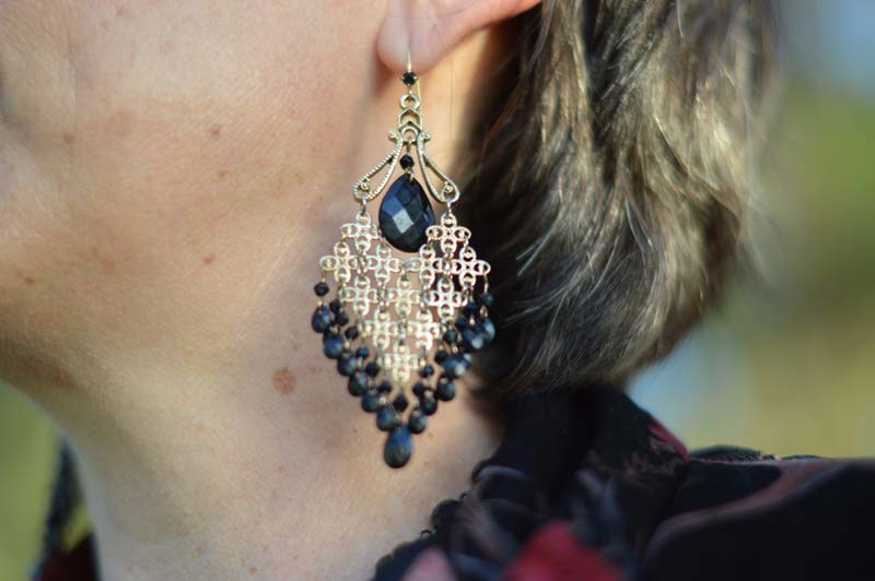 As for my jewellery, I went for black and gold. The lovely gold and black earrings and gold circular ring were gifts from my mother-in-law, I inherited the watch from my late step-mother-in-law (which, incidentally, didn’t have a battery but I wanted to wear it so, well, who cares, right?!). The necklace is one that I’ve had for many years, but I don’t wear so often. I don’t know why because it’s gorgeous!