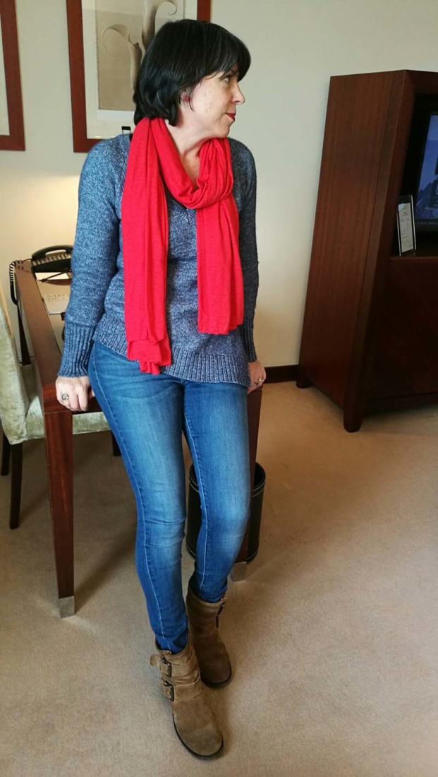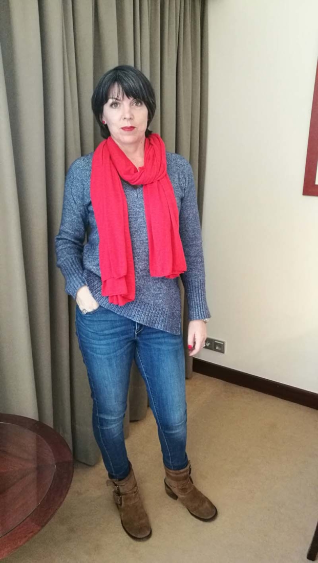 This is what I wore to travel to Lisbon (about two – two and a half hours from home), my favourite skinny Levi’s, Massimo Dutti sweater, boots and red scarf. But, like I said before, terrible pictures :/