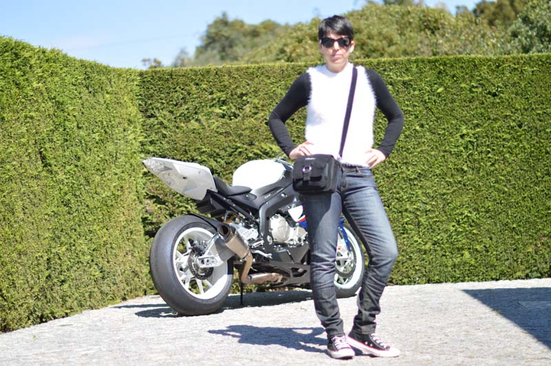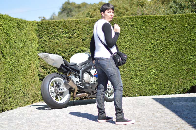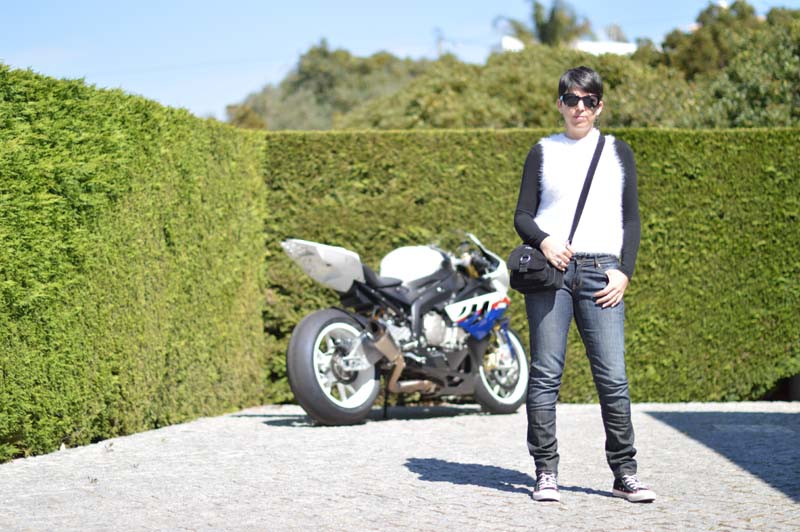 While Michael was cleaning his motorbike the other day, I figured it would be a fun backdrop for an impromptu photoshoot (pretending to be a biker chick!). His sporty BMW is clearly his pride and joy, so I had to be careful though 😉 But, as you can see from his photography skills, his bike is also the only thing he wanted to focus us (no surprise there!) hence me being slightly blurred whenever the bike is in shot!