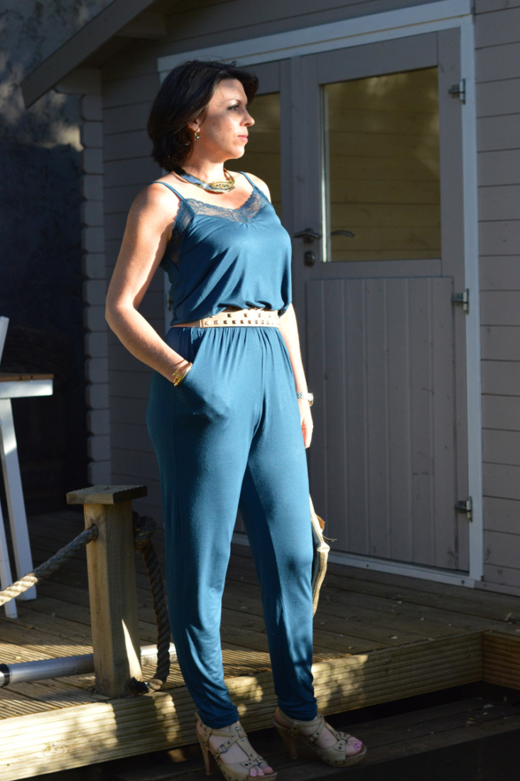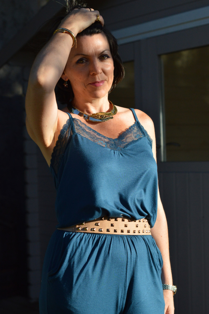 Speaking of hubby, when I first put the blue jumpsuit on, he did comment that it looked a little like pyjamas. But as soon as I jazzed it up with the jewellery and heels, he changed his tune. (Not that it would have made a difference – I’d have worn it regardless!).