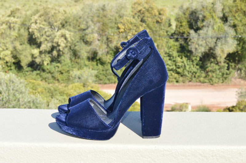 Here is the perfect example of an impulse buy. I bought these gorgeous blue velvet shoes a couple of weeks ago in the sale for a bargain (and I mean a serious bargain – under 10 euros!) even though there is a problem with one of the ankle straps. Basically, it’s almost impossible to put the strap back through the buckle because it’s a little bit too thick at the end. But I didn’t care, I totally fell in love with them and I just HAD to have them. Besides I figured at that price, I could take them to the local cobbler and he could somehow fix them for me. Needless to say, I haven’t been yet. But I will, because I LOVE these shoes and I can’t wait to wear them when the weather improves.