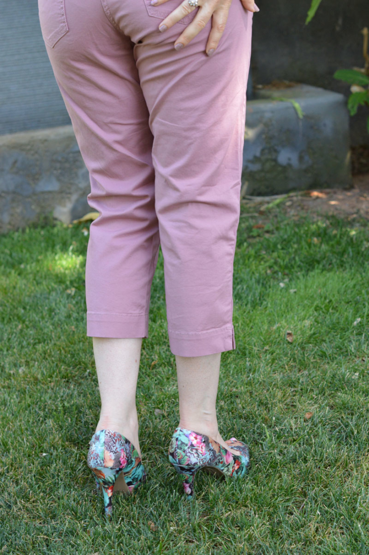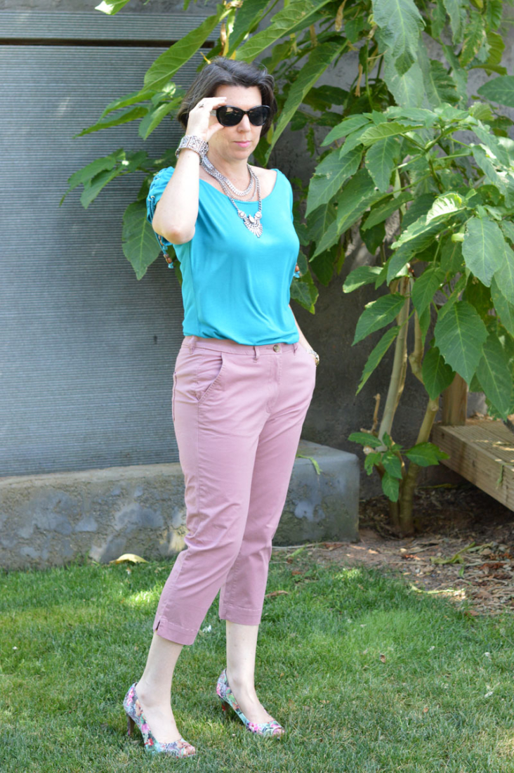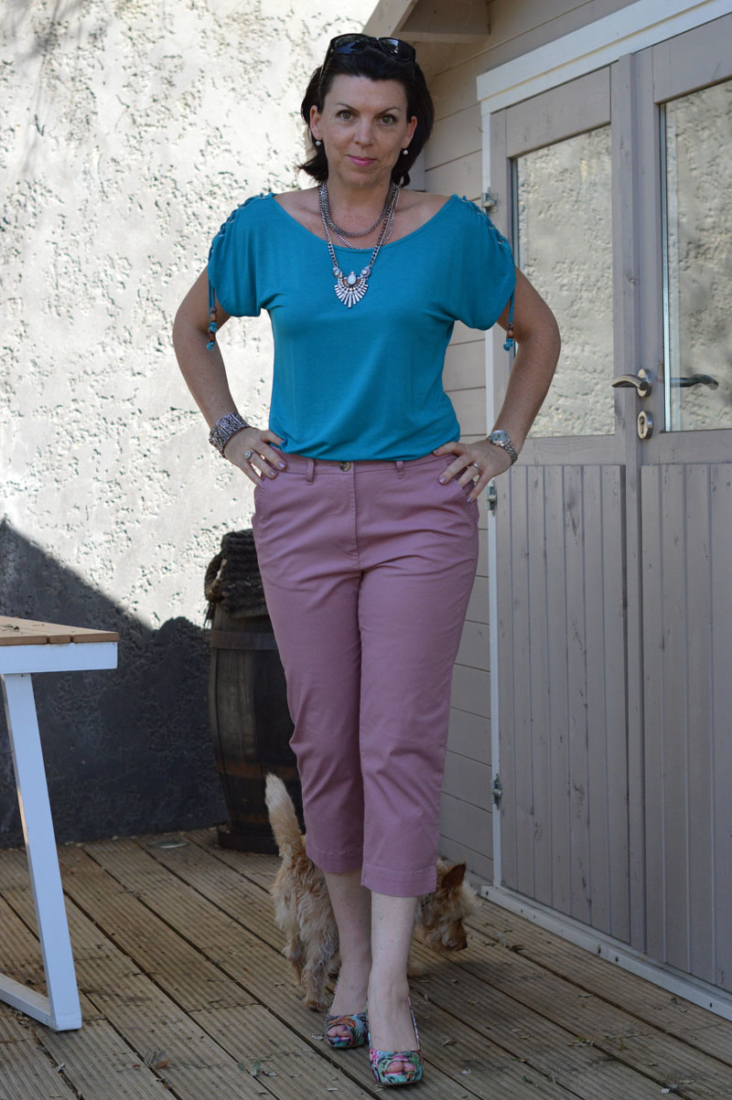 I’ve also been wanting a pair of coloured capri trousers and these pink ones spoke to me. Although one of my dislikes is visible pocket lines (I just made that up), the comfort factor makes up for it with these Bonmarche cotton trousers. I think they’ll go with loads of things in my wardrobe – dressed up or down will be a great option. Although cotton, they are a little thicker than I’d imagined, so would be perfect for the English summer!