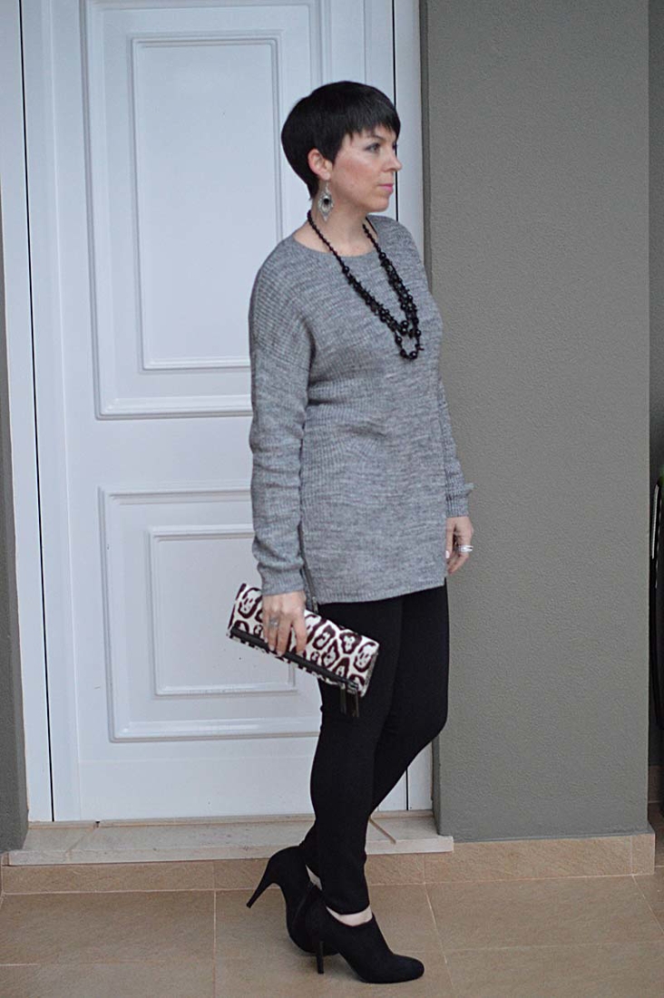 I love mixing casual pieces with more dressy elements. For example, last week we went out for dinner with friends so I dressed up my new, grey H&M jumper with heels and a clutch, a statement necklace and ear-rings (both of which I’ve had for years), not to mention the simple black leggings from Stradivarius. It’s such an easy outfit to put together yet looks stylish at the same time. You could easily wear boots with it too. A few days later I wore the jumper with skinny jeans and Converse for lunch with a pal.