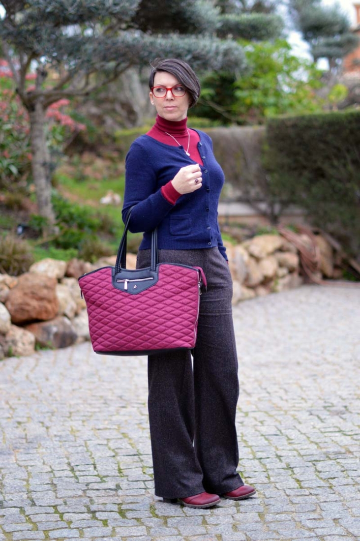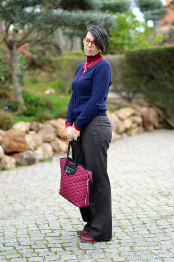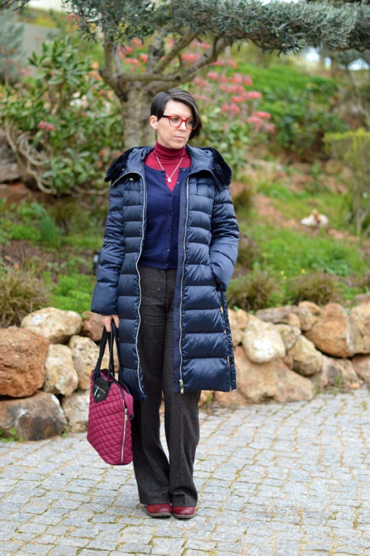 But back to my stunning Simon Harrison Chinese Zodiac necklace. Initially, I’d thought to wear it with something more fun and flirty but because it was a little bit of a chilly morning, I settled instead for my favourite wide-legged wool trousers and a plain burgundy polo neck beneath a navy blue wool cardigan. Add to that my burgundy Rieker ankle boots, burgundy Knomo handbag and my Massimo Dutti winter coat and my outfit was complete. I like to call it ‘librarian chic’ 😉