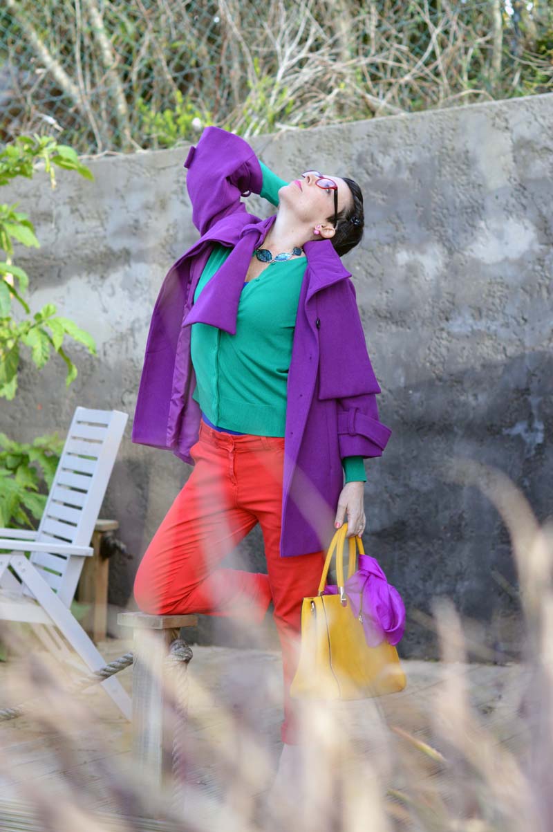 My red trousers were the obvious choice because, like I said, I wanted to include all the colours of the rainbow into this outfit. Sadly, I don’t own trousers in any other bright colours – but, again, I do keep looking. I’d especially love a yellow pair. I must add, I’m not particularly fond of these trousers. I bought them years ago from Modalfa (a Portuguese brand) and I’m not over keen on the fit. The waistband is a little low for my liking. I do prefer a much higher waist – I think it’s much more flattering. But they’re okay for the occasional wear.