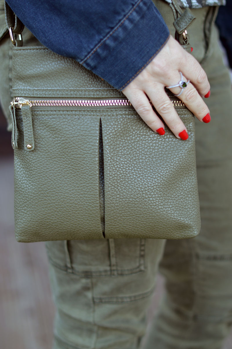 The outfit you see here is pretty low key in comparison, but it’s the kind of outfit I love, because I adore combats and I adore khaki! These funky wedge floral trainers were a gift from a friend and this is the first time I’ve worn them. They’re great, aren’t they? She bought them for herself over a year ago but passed them on to me (I can’t remember why she didn’t want them). I think they look great with the combats, don’t you? The bag is a cheap and cheerful one that I picked up from Primark a few months ago – purely because I loved the colour (I’m so predictable!) and the earrings are one of three pairs that I have in this style – a green pair (pictured), a pink pair and a multi-coloured pair. I love how girlie they are.