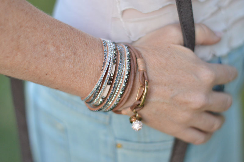 The cute brown wedge sandals were given to me by a very good friend. She’d bought them and had never worn them! My suede fringed handbag also happens to be from Massimo Dutti (what a surprise, right?!). The BMW watch isn’t exactly mine – I borrowed it from Michael because I love pairing manly watches with girlie things (and this frilly top is certainly girlie). As for the bracelets, the beige leather one was a gift and the other I bought from SecretSales last Christmas. Unfortunately, some of the sparkles have fallen off, which is a bit disappointing.
