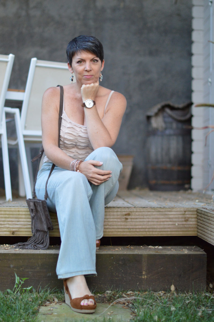 With a wide leg and sitting fairly low on the hips, this is one pair of comfortable jeans that will be cherished over the years. However, after seeing these photos, I will admit that they’re not particularly flattering on my backside – or maybe that’s just the style of top I’m wearing? Not sure, but I don’t care. I absolutely love them.