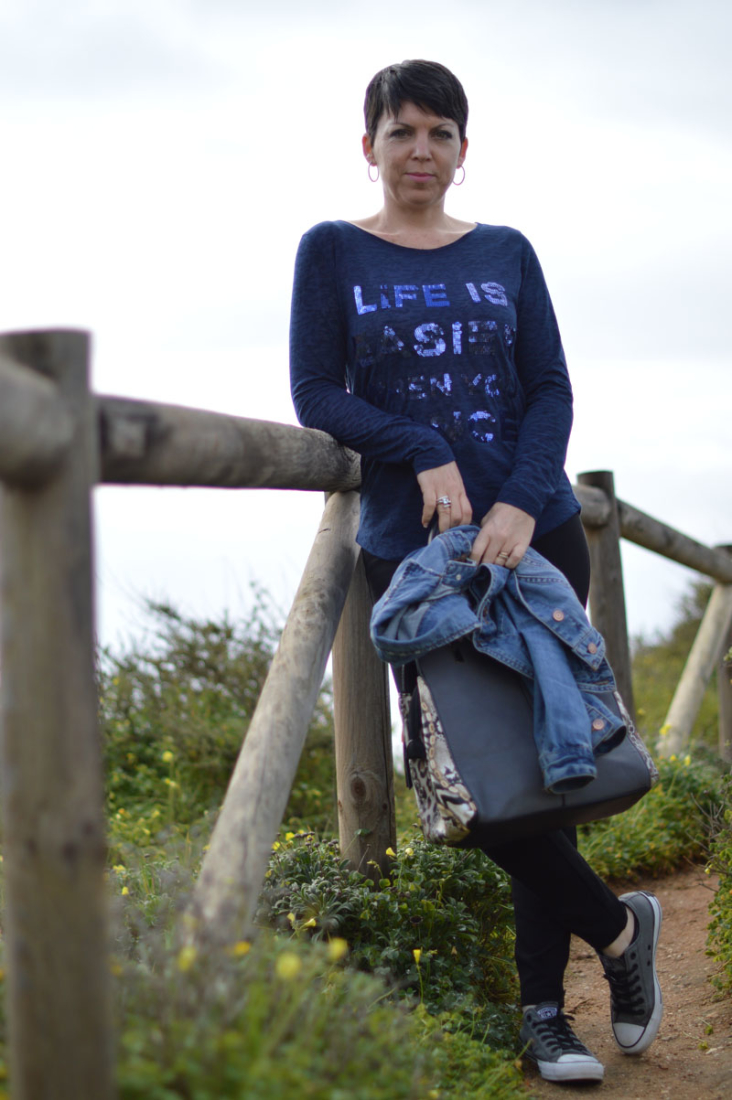 I am a real casual kinda girl, I love jeans and Converse so for me to wear black trousers with converse, heck that’s almost a dressy outfit! But I do love the way it looks, plus it means you can add a denim jacket and avoid the whole denim on denim thing – having said that, I happen to love denim on denim (!). Here I’m wearing a pair of high-waisted skinny black trousers bought from Primark several years ago. Oh and the jacket is Primark too. When I decided I needed a denim jacket, I hunted high and low, trying on every single denim jacket I could find in our local Aqua shopping centre and you know what? The best one with the best fit and feel, was in Primark. It was also the cheapest 😉