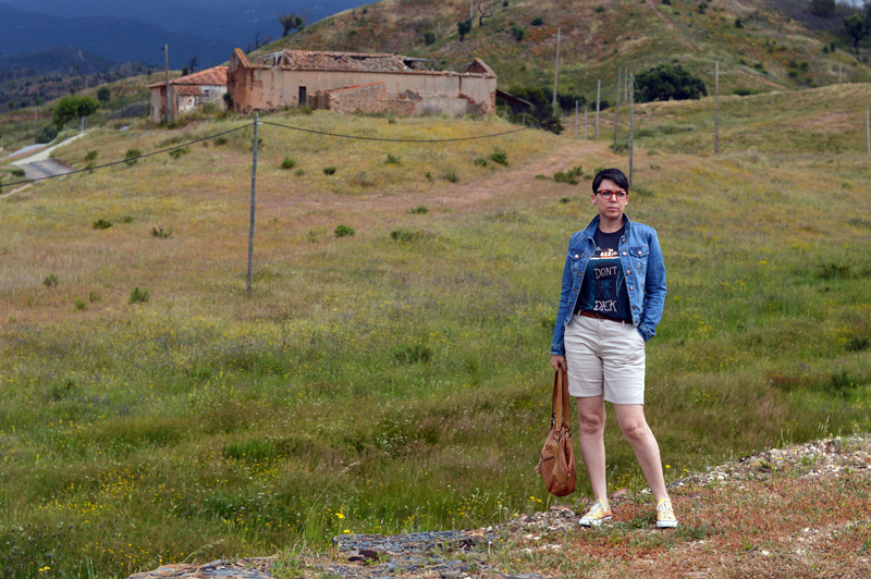Anyway, I just had to have the Don’t be a Dick t-shirt because it makes me laugh! I wore it a few weeks ago, when I wasn’t feeling so good (so please excuse how I look). The weather was super weird, but just about warm enough for shorts. Hubby and I had gone out for a coffee and then stopped by the Algarve race track to take a couple of photos of my t-shirt. I know I’m not looking particularly stylish but I just wanted to share it with you. Isn’t it fab? The race track was just around the corner from here.