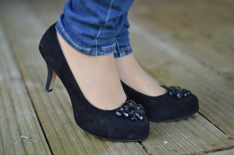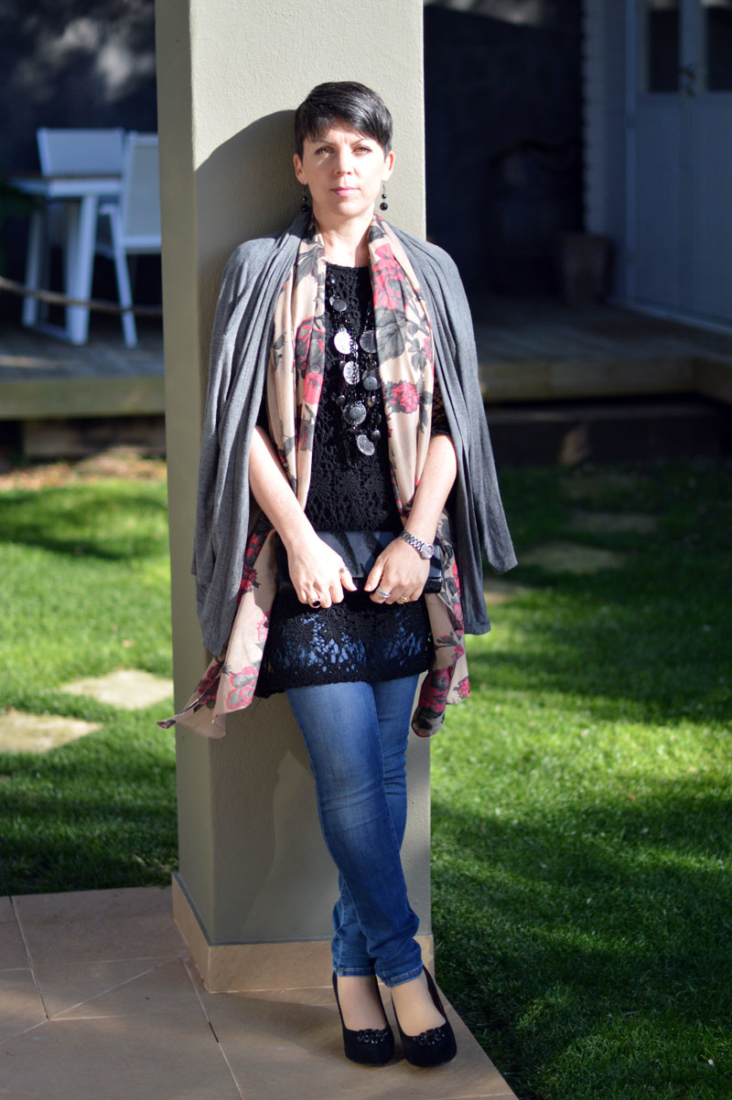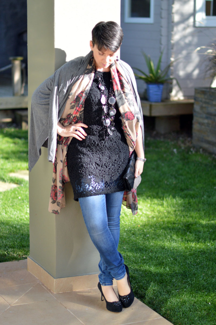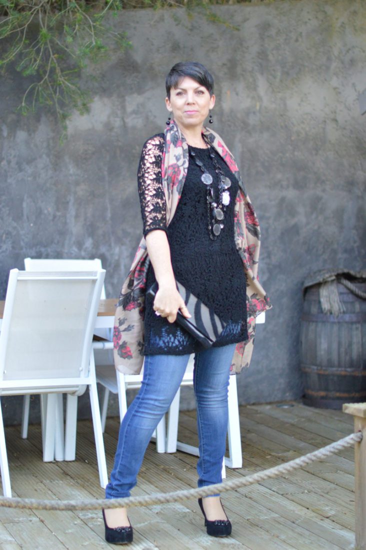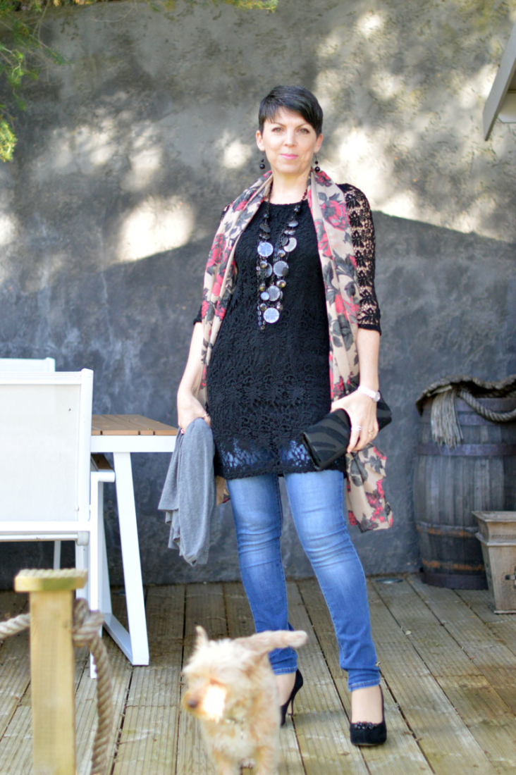 Anyway, the first evening out after this light bulb moment, I opted for my favourite pair of skinny Levi’s with this cute little black crochet number. The dress is perfect because it’s a little loose around the waist, allowing for the jeans to sit comfortably without the button poking through the top (one of my pet hates – well, that and really obvious VPLs). It’s an old dress I bought from C&A many moons ago (in the sale, naturally) which I’ve probably worn about four times in total. Now though, seeing how great it looks with jeans, I’ll be wearing it a lot more often. I might even try it with a pair of trousers! Shock horror! 😉 It’s not that I dislike my legs or anything, I just feel more comfortable with them covered up. Weird, really.