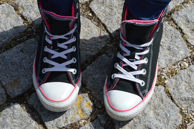 My outfit was a simple one. My favourite skinny Levi’s, black and pink Converse and a pretty pink and purple tee flourished with a hint of Victorian frills. It’s one of my favourite tops because of that. I also added a hint of animal print with this black and grey cardigan. I quite like the clashing prints here.