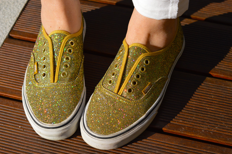 As for the rest of my gay pride outfit, I knew I wanted something sparkly or with sequins, which is why I chose my colourful gold Vans. I removed the laces because they are a bit too rigid with them in. Occasionally I wear them with ribbon laces, but for this instance I liked the simplicity of them as they are.