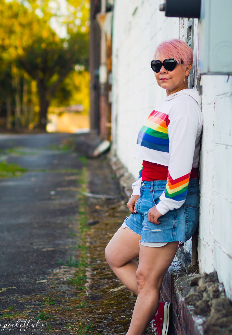 It’s that time again. Time for the Fab40s to strut their stuff and style an outfit with one general theme. And this month we’re very proud to be supporting Gay Pride month. When Shelbee first gave us this month’s theme, I thought. Hm… gay pride? Then I thought, why rainbows, of course! That should be easy. But I was wrong. I popped to the shops to see if I could find anything rainbow inspired but there was hardly anything on offer, apart from a couple of t-shirts that looked awful on me. And then I had a bit of an epiphany. My rainbow-coloured sarong…