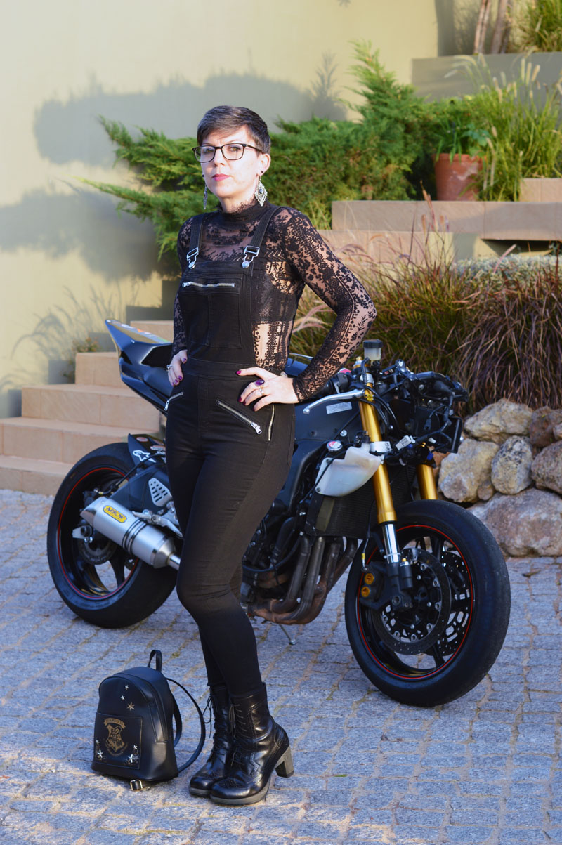 I actually had no pre-conceived idea about what I would wear for this month’s goth vibes theme though. But when I started thinking about it, these black dungarees popped into my mind. I know what you’re thinking – dungarees aren’t exactly known for their goth-ness, but I just thought they might work. I bought them from H&M earlier in the summer and it’s been too warm to wear them until now.