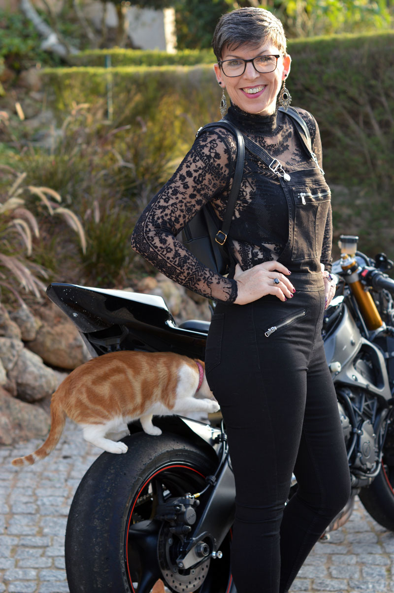 I have several tops in my wardrobe that would have worked for this theme but this sheer black lace blouse from Bershka was one I’d never actually worn before. Shock horror, right? I know, I know. It’s too beautiful, why haven’t I wore it?? I really can’t answer that question, to be honest. But I do love it. I’s simply stunning, isn’t it? However, it is rather sheer and a little on the sexy side. Which is probably why I figured it would be great with the dungarees, which does provide me some extra cover 😉