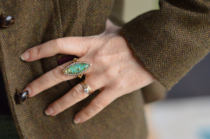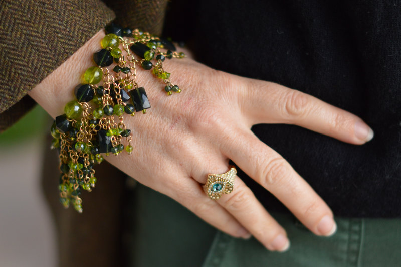 A gift from mother-in-law, the necklace is one of three in different colours (at least) that she bought for me at Christmas. She also gave me this beautiful ring for Christmas, and the bracelet too. And, because the outfit was all about comfort, I was also wearing my stunning black Calla boots.