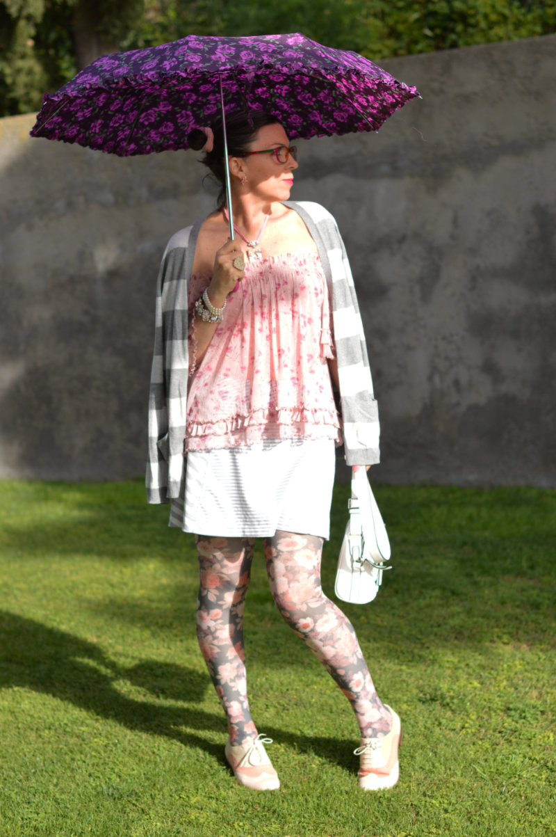 The super girly pink blouse was from Bershka quite a few years ago, and the skort was given to me by Sophie at Sophie’s Golf Shop (yes it is a skort that you’d wear to play golf lol). I bought these floral tights from H&M ages ago and have never worn them because I’ve never found the right outfit for them (until now!). A few pairs of shoes later, I remembered my peachy brogues from Clarks. For a little added extra, I picked out my Tommy Hilfiger grey striped cardigan and threw it over my shoulders. I love how it *goes* with my skort but clashes with everything at the same time!