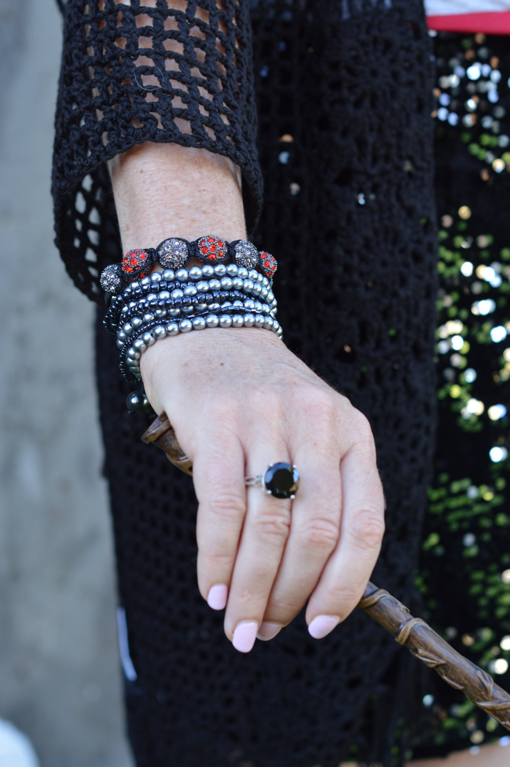 I bought the crochet cardigan a few years ago from a local shop, and I adore it. Don’t you think it’s got a real witchy vibe to it? It’s kind of boho too, right? I love to wear it with a vest top and skinny jeans as well. The shoes came from another shop on our local high street but I’m not sure it’s still there, sadly. I hadn’t intended to wear the sparkly skirt but when I tried it on, it just felt right and I love a bit of sparkle. Who doesn’t?!