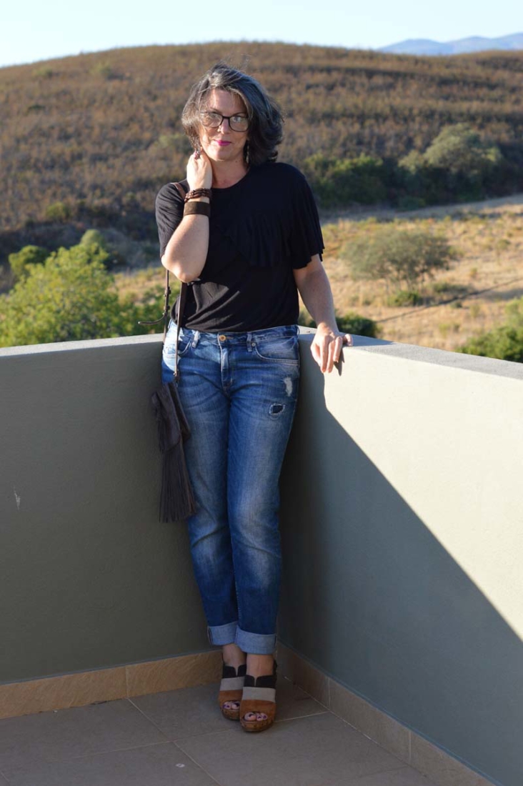 But back to the cooler days. I’m delighted that this also means that my jeans are back on the wardrobe menu… I hate it when the weather is too hot to wear my jeans lol. Last week, to go out for a bite to eat, I got out my trusty boyfriend jeans from H&M and teamed them with this super cute ruffled black top that I found on the Primark sale rack for just a couple of euros. Both went perfectly well with my favourite pair of ‘clogs’ (that I continue to go on and on about coz I love ’em so much). A simple and comfortable outfit, but also one which gave me a certain amount of confidence – and clothes should boost your confidence, right?