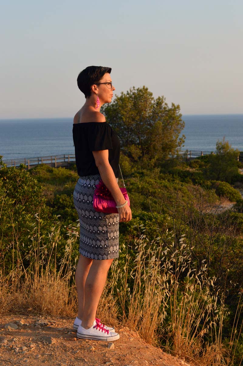 So, next up… what do I wear with my laced up Converse? Hm… a pink summer dress? Perhaps. But no. That’s just a little too much pink. How about this Primark black and white printed pencil skirt? Yes! Add to that, my Pull & Bear black top which I have worn on the blog once before. But this time I tucked it in just to be a little more polished (even though I would have preferred it to be out on account of my bloated {time of the month} tummy).