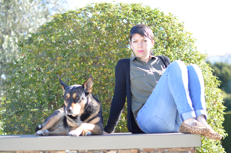 Before we headed out to the nearby marina at Praia da Rocha (I thought it would be a great place for photos) looking out across to Ferragudo, we took a couple of shots of me with Roxie, our beautiful 10 year old dog. She’s a real sweetheart and this is her favourite spot in the garden – on top of the gas house. One of these days though, she’s not going to be able to jump this high! Having said that, I realise you can’t actually see how high it is from these pics – but it is quite a climb for her.