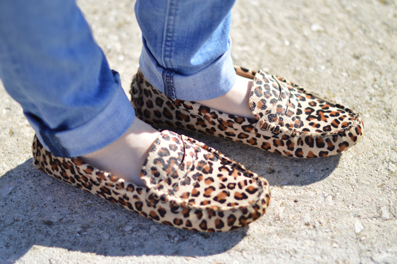 I bought a fun pair of leopard print moccasins in the January sales. I never thought I’d see myself wearing something like this but they were a real bargain in Massimo Dutti so I figured why not? To be honest, I’m still a little unsure what to wear them with so yesterday I simply teamed them with a pair of skinny blue jeans, a khaki shirt, black cardigan and my favourite burgundy tote bag from Knomo. If you have any suggestions of what I can wear them with, I’m all ears 🙂
