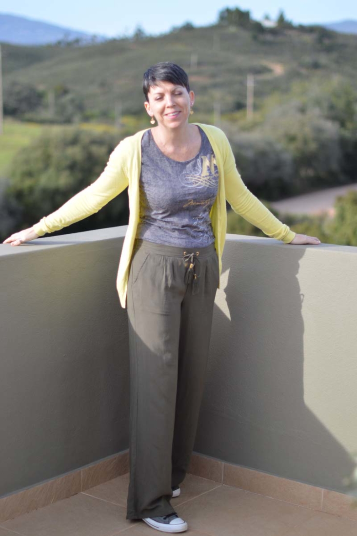 I would never have thought to have teamed these trousers with this Ministry of Magic graphic tee and yellow cardigan but when I put them on, I was surprised it all came together so well. It’s now one of my favourite outfits! Although I must admit the trousers are a tad long to go with my converse. I’ve thought about hemming them, but then they’ll be too short for my summer wedges. Aaargh… decisions, decisions! Mind you, for ten euros, maybe I should just buy another pair and keep one long and the other shorter lol!