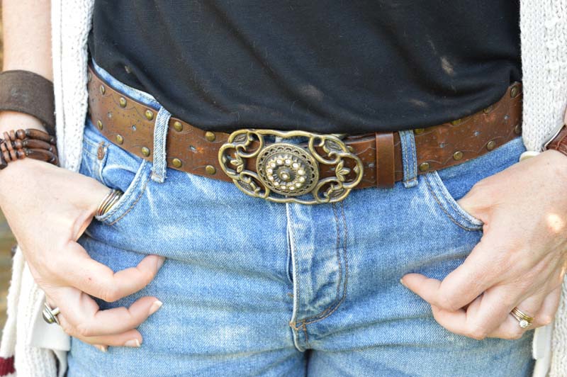 In this outfit, I added a brown buckle belt that I’ve had for years. I think it came free with a pair of shorts about twenty years ago lol. And it’s still good. I think this wooden bracelet and my brown suede wrap bracelet go really well with the belt too.