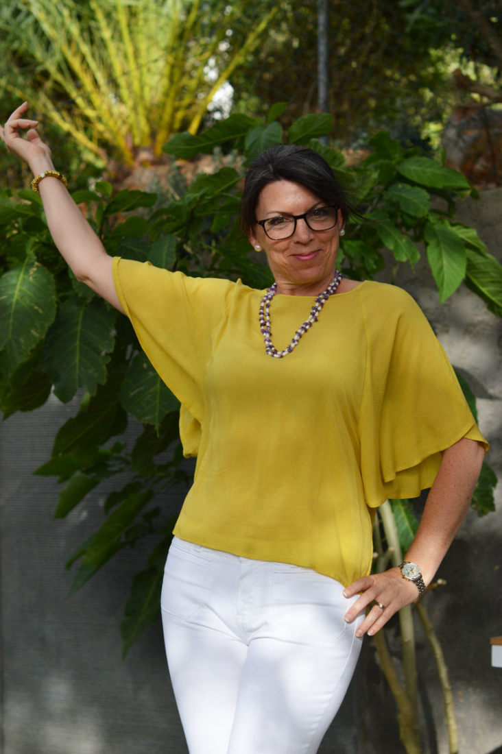 I must admit that I’ve had this mustard yellow blouse for a few years now and I think I’ve only worn it once! Although I love the fabric and the colour, it is very thin fabric and when I hold my arms out, you can see right through to my bra lol. Hence the need to keep the arms down 😉 It’s also a little transparent!