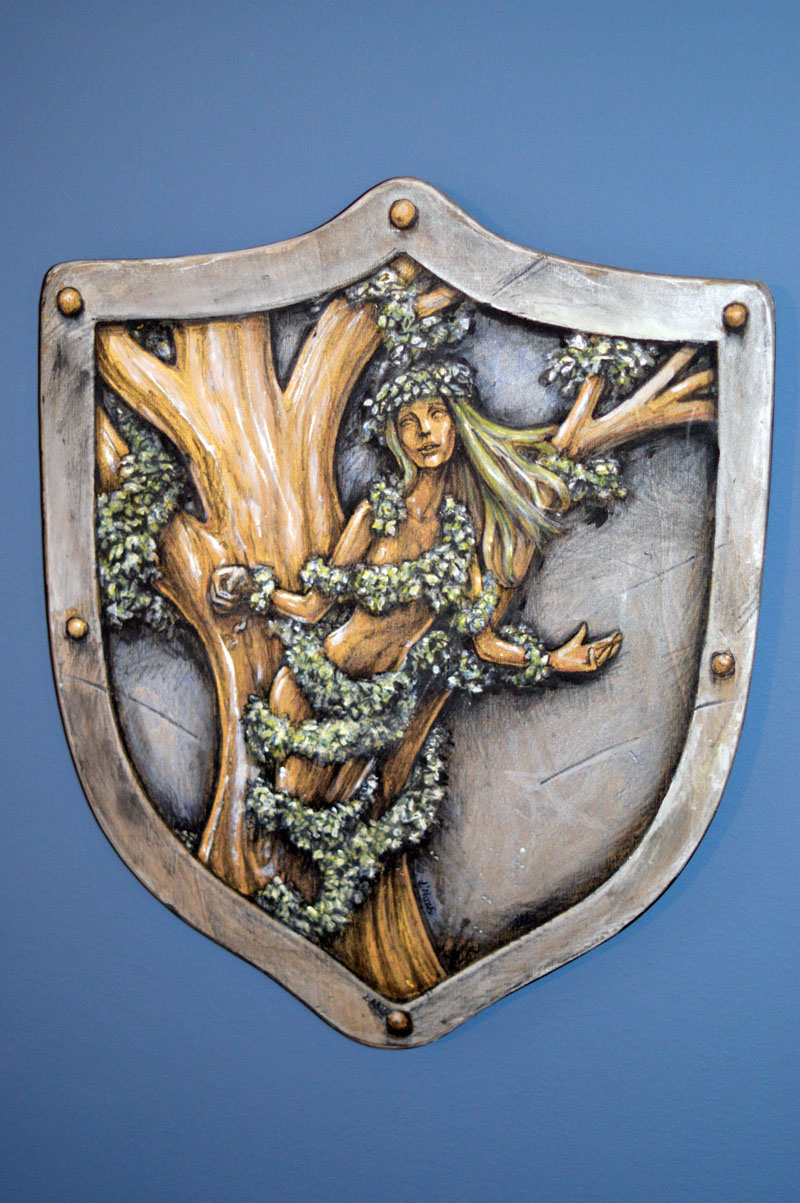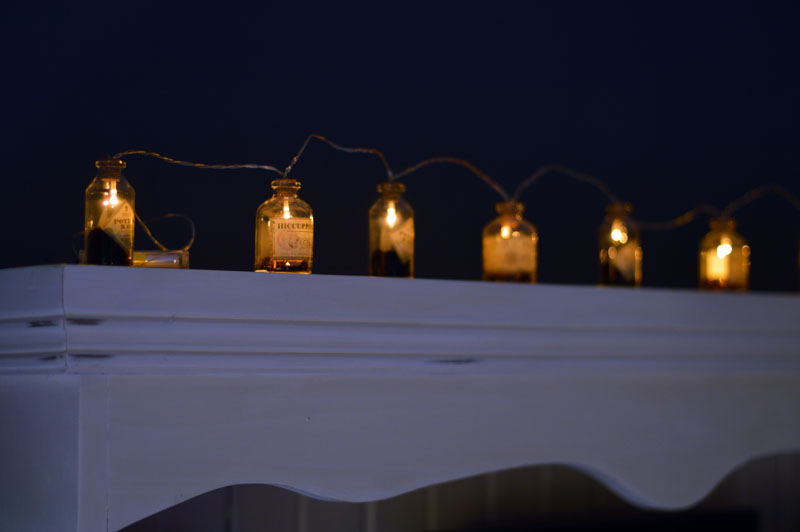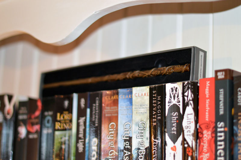 I really love my new office now. I’ve added all the little things that I’ve been collecting over the past few years. Initially, I was keeping it all for when we build the new house but I figured it was silly to wait. I might as well enjoy it all now, right? It’s these little things like the beautiful fairy we bought from a man who handmakes them in Lisbon; the goddess shield we bought at the Medieval Festival last year; the strand of Harry Potter lights; Hermione Granger’s wand; the concrete skull I spray painted gold; the witchy/raven paperweight another fabulous friend gave me; the tree book ends (another gift from Sarah); the pink skull cushion my lovely pal Sarah made for me because of my obsession with skulls etc.