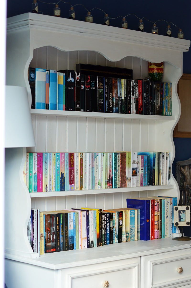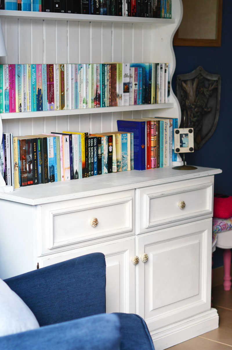 As for my furniture, remember I recently told you about my love for upcycling? Well, we bought this beautiful Welsh dresser from a really lovely couple who just happen to live around the corner from us. We found it via Facebook marketplace and couldn’t believe they lived so close. It was exactly what we had been looking for – all we did was paint it white using chalk paint, and then slightly distressed it. Gorgeous, isn’t it? It’s perfect for displaying all my books (well, some of them).