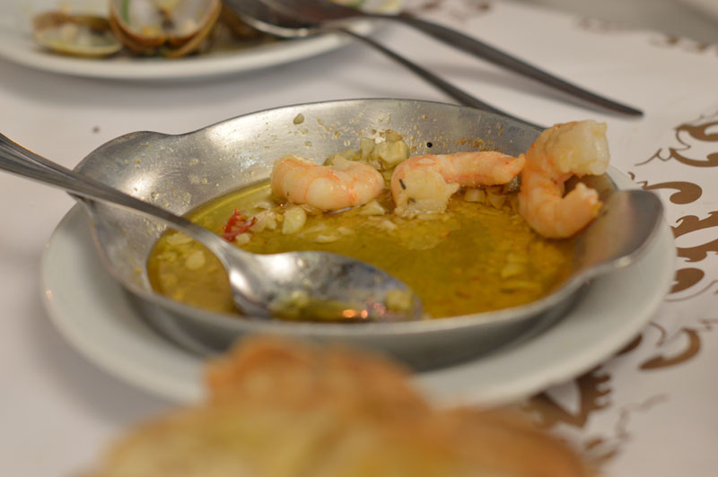 The clams, done the traditional way in garlic, white wine and coriander just melted on the tongue, but we were still thinking about those prawns so we ordered some more!