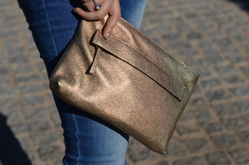 I love these distressed skinny jeans that I bought from Tiffosi last year, and I think they help to add a casual touch to the outfit. The shoes were from Massimo Dutti and I’ve had them over a year. They go with so many things – I just love them! The gold leather clutch was also from Massimo Dutti in the sale a couple of weeks ago. I’ve had my eye on it for a while so was delighted to snap it up at a discount.