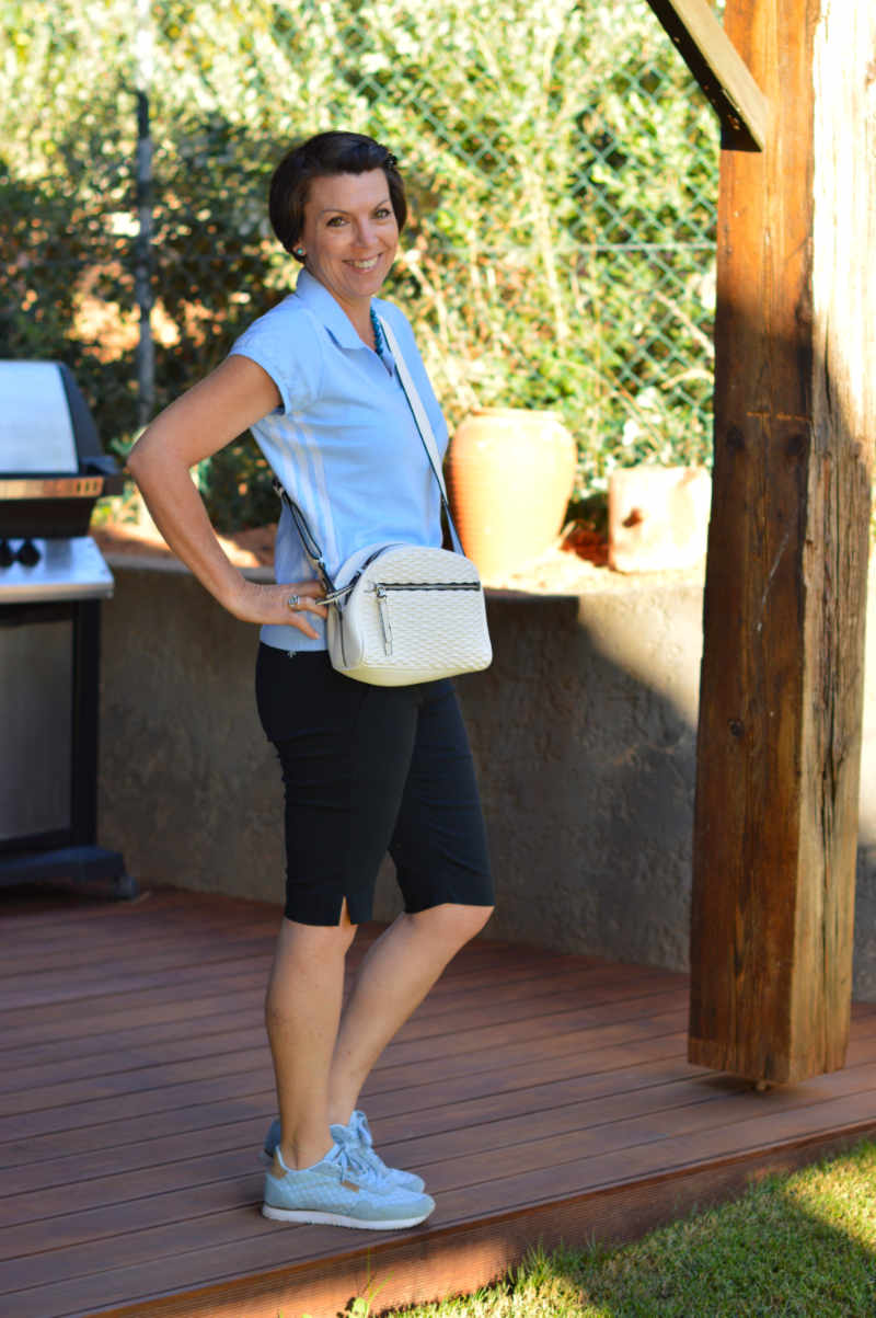 This month’s Fab40s theme was the easiest theme for me because it’s ‘shorts for work’. And shorts for work is exactly what I wear when I’m working at Sophie’s Golf Shop! Basically, this outfit is exactly what I would wear on a normal working day…