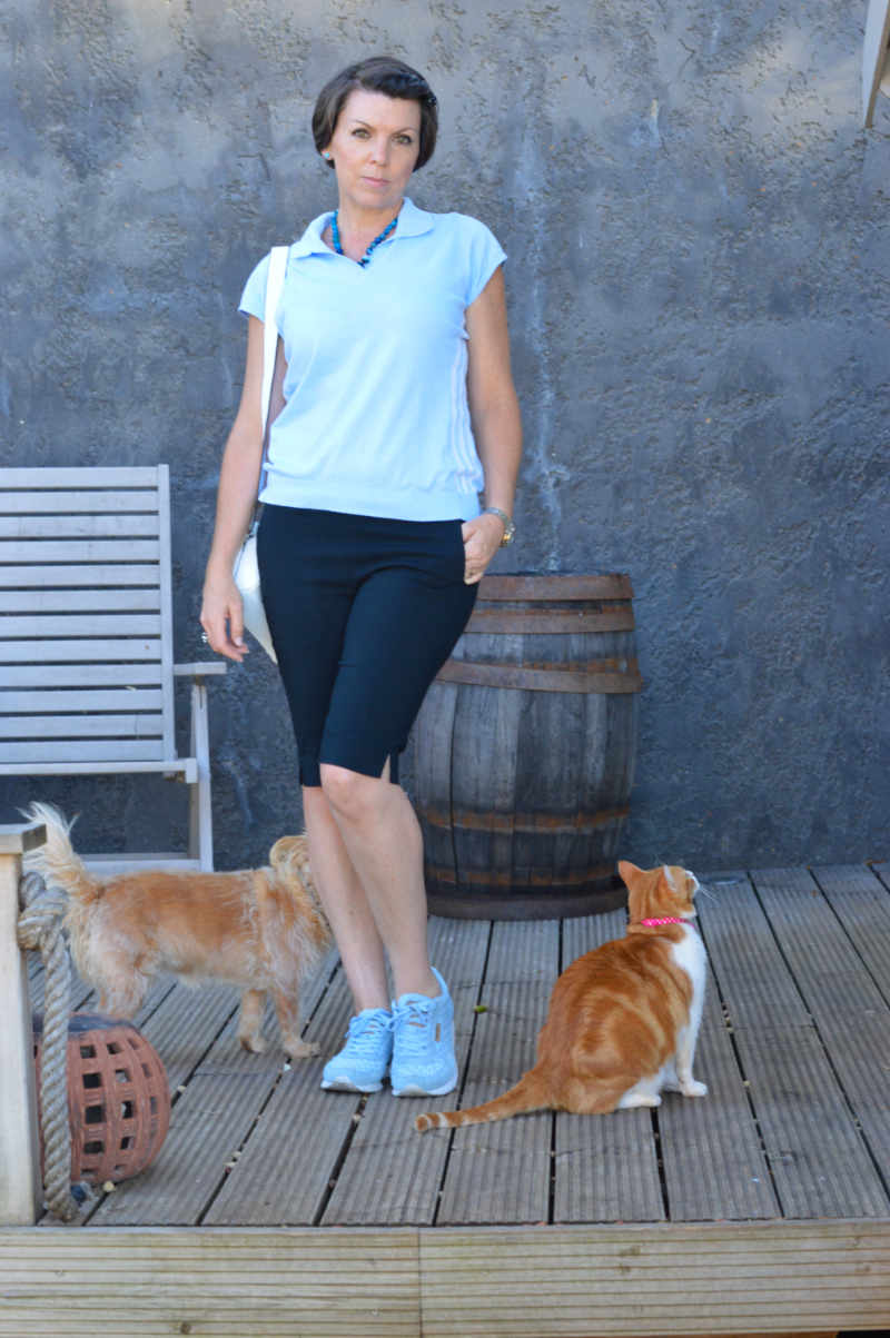 The pale blue polo top is from Adidas – you might’ve recognised their signature stripe down the sides. Needless to say, the polo is available at Sophie’s! The black pull-on shorts are probably my favourite pair of shorts at the moment. They’re by Green Lamb which is a really popular golf wear brand but everything they do is perfectly acceptable for everyday wear too. Again, we stock the shorts in the shop lol! And they’re also available in other colours too. I sound like I’m actually at work don’t I? lol!