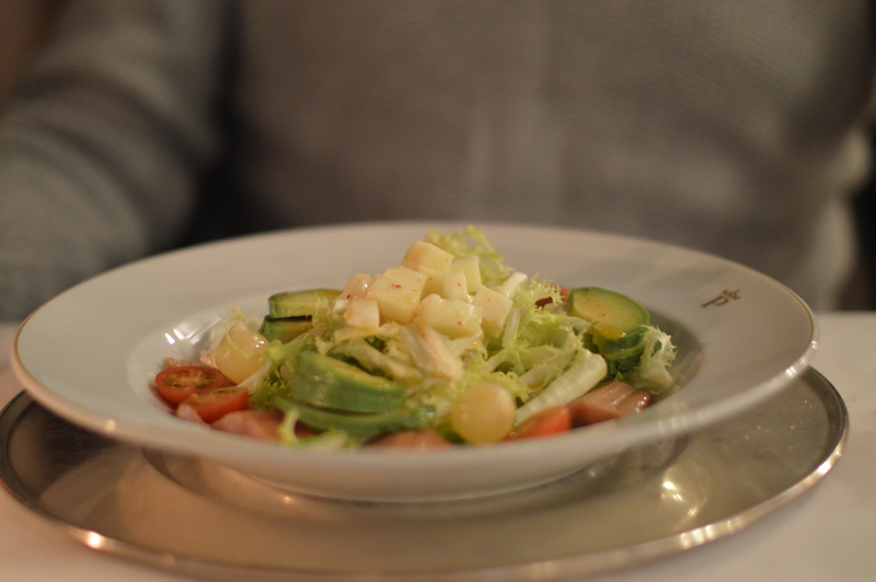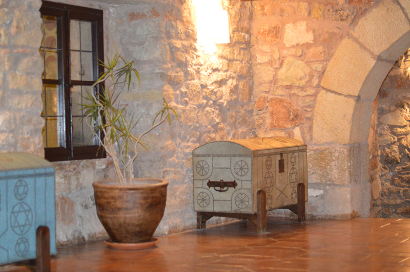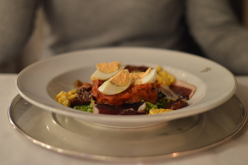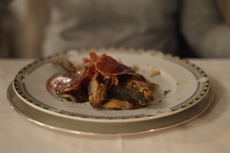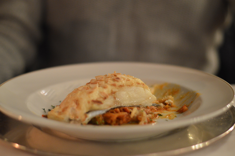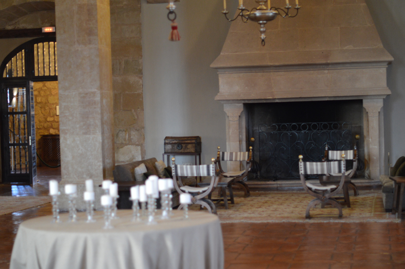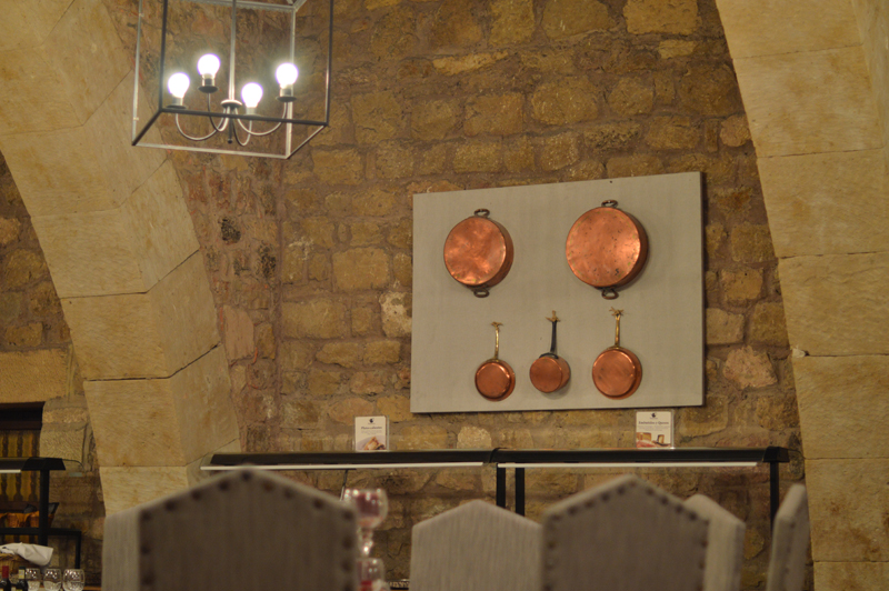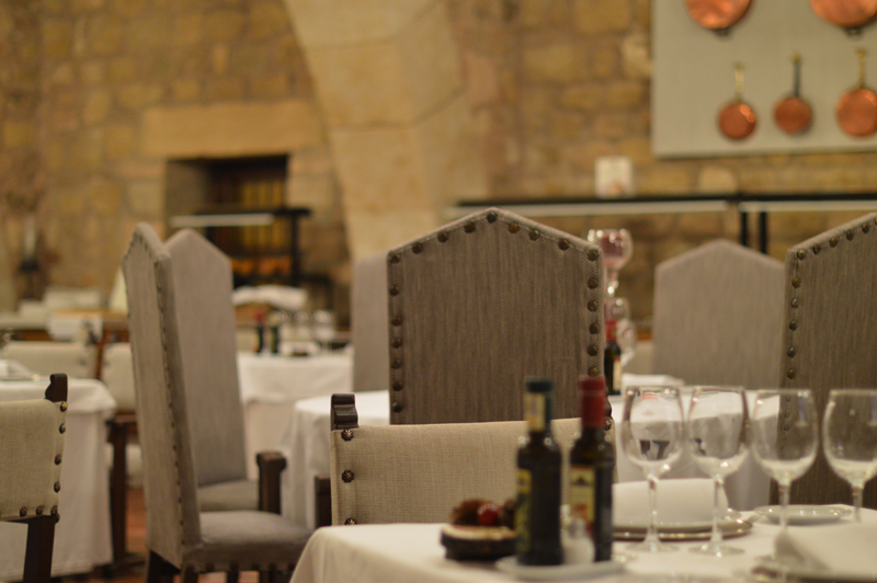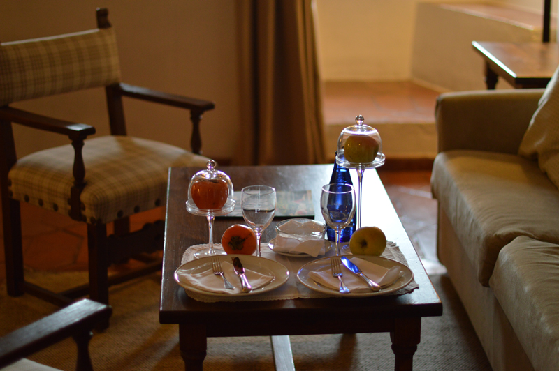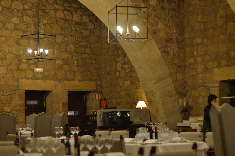 The ‘Autumn Menu’ was a set menu with plenty to choose from – I went for the roasted red peppers with duck ‘ham’ for starters (the starters were HUGE by the way), followed by trout with the most delicious jamon and then the yummiest biscuit cake with hot chocolate sauce topped with vanilla ice cream (thank goodness for my lactase pills!). Michael went for the smoked sardines with avocado followed by cod with aoili sauce, then a fresh fruit salad. Oh, I almost forgot to mention we were given some of the best chorizo I’ve ever tasted, on the house at the beginning of the meal. I washed it all down with a glass of white wine (Michael stuck to water as usual) and we paid about 70 euros for the lot. Not too bad for so much yummy food! Especially when it was served in such a beautiful room – in a castle! (Can you tell I’m still excited that we stayed in a castle?!)