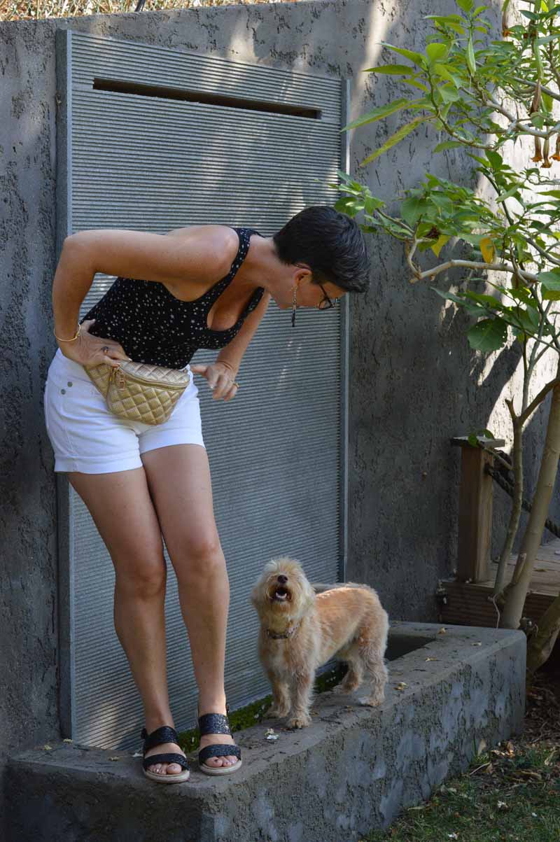 Instead, I wore a simple pair of white denim shorts and a vest top. I had intended to wear a tee-shirt and sneakers but it was just too hot for me. Sandals were the only option. And I was still TOO hot! I also wanted to be completely hands-free, so a bumbag was the way to go. However, I only had one bumbag which is brown leather and really quite drab, to be honest. So, we popped into Aqua shopping centre yesterday morning to see if I could find a more suitable one.