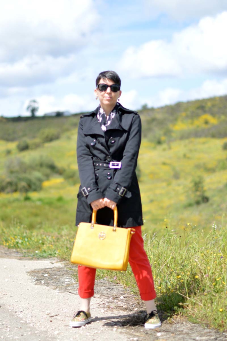 I didn’t want to wear it with jeans and dark colours because it would’ve looked like I’d just stepped out of December and I wanted a spring look so I delved deep into my wardrobe and pulled out these red trousers, trying on all sorts of combinations to find the right look. I must admit, I did struggle.