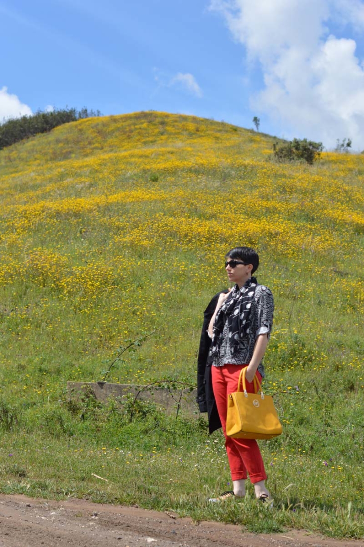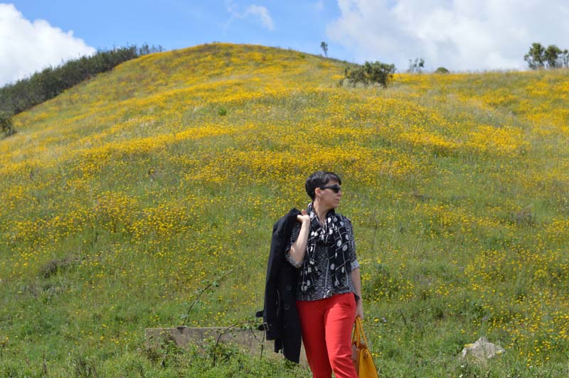 As always, we tried to find a beautiful location to shoot photos and we lucked out on this one with all the gorgeous yellow flowers. It’s almost like I styled my outfit around the location! It’s down one of the back roads from Portimao towards Monchique, not far from where we live. I’m such a lucky gal 🙂