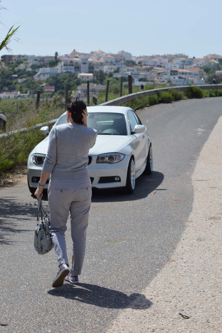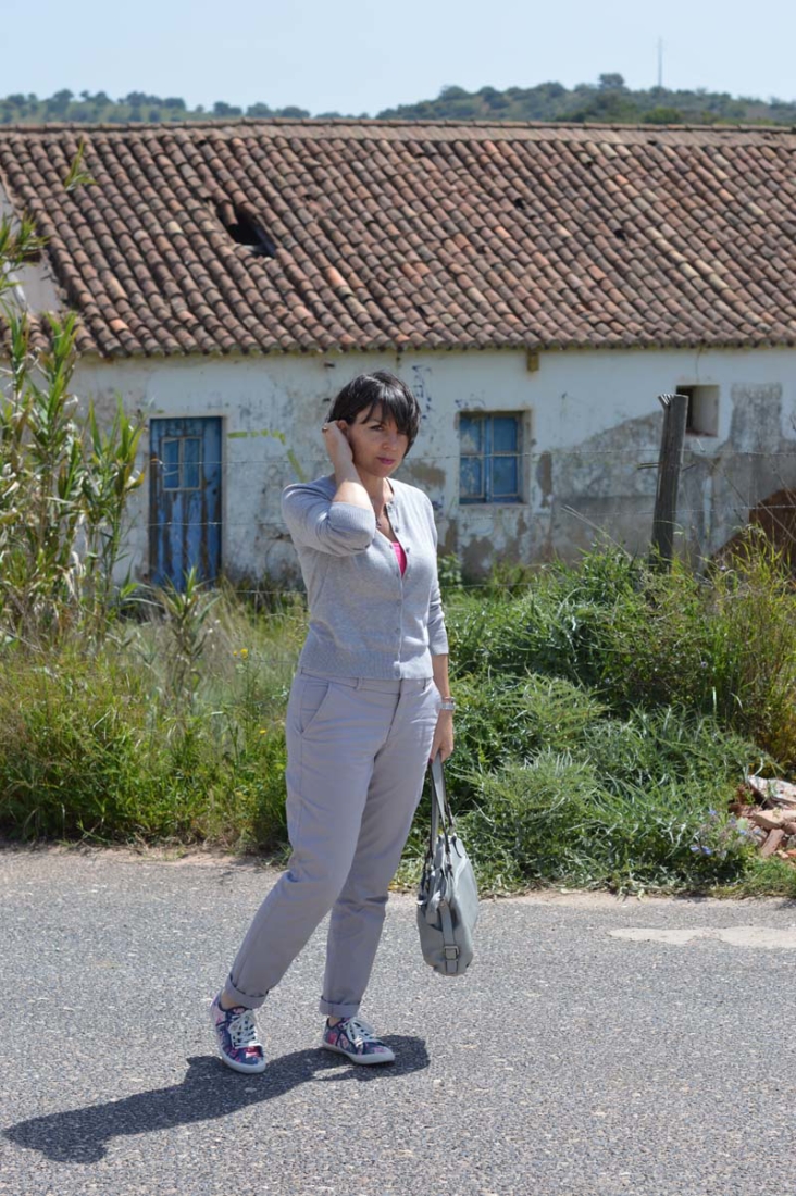 I went with simple accessories for this simple outfit. Owl earrings, my Pandora bracelet and a heart necklace that hubby bought for me the first time we were ever apart (he went back to England to buy a motorbike many years ago and we were apart for about a week). Naturally, I opted for my grey Marta Ponti handbag too! The photos were taken just off the motorway between Monchique and Portimao. Unfortunately, it’s private property so you can’t get too up close and personal to these fabulous old buildings. But it was a great spot for photos!