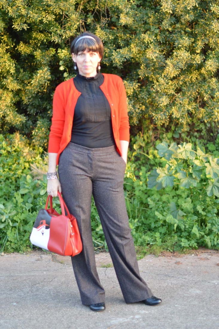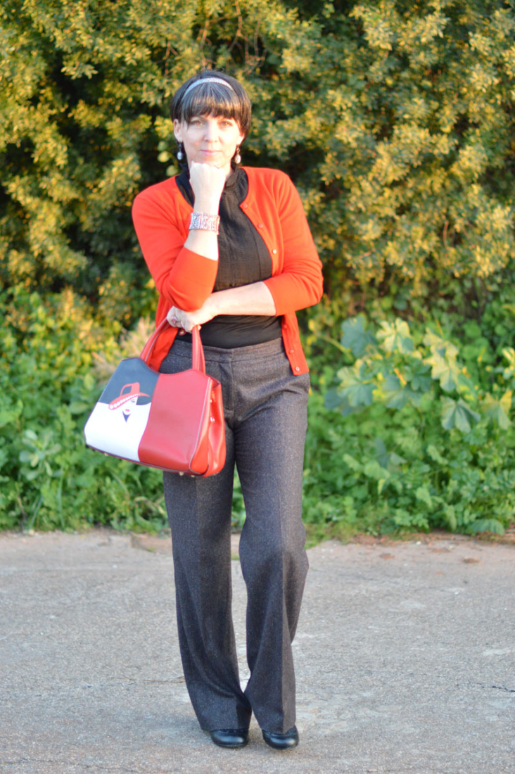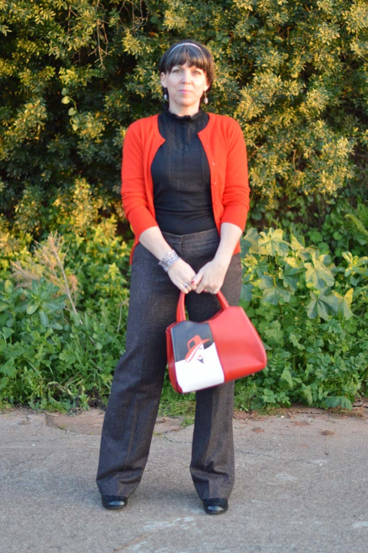 I added the simple red cardigan from H&M for a dash of colour and also to tie in my scrumptious new handbag (a gift from Jackie, my mother-in-law) which you will remember from just a few posts ago where I showcased an entire outfit she bought for me.